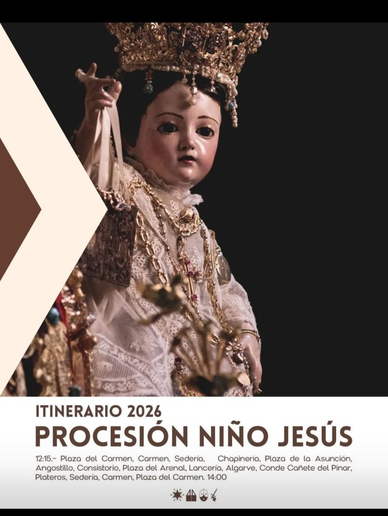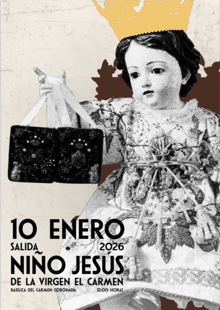 La salida del Niño Jesús de la Virgen del Carmen tendrá lugar el día 10 de Enero de 2026 a las 12:00 desde la Basílica del Carmen.